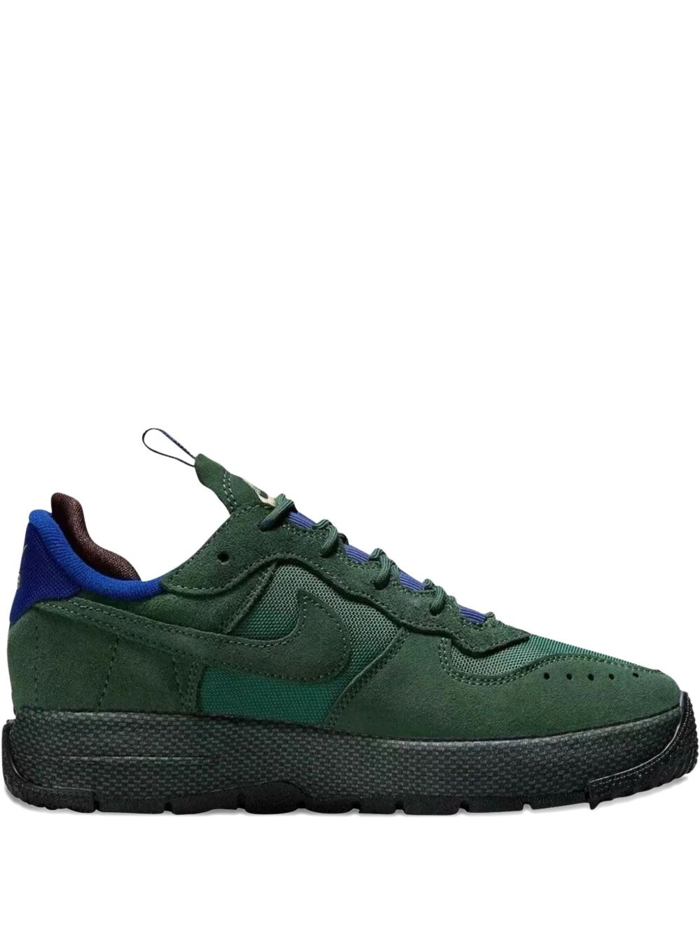 Air Force 1 Wild "Fir Green" sneakers Highlights - Dark green - Calf suede - Front lace-up fastening - Contrasting branded heel counter - Signature swoosh logo detail - Pull-tab at the tongue - Logo-embroidered tongue - Perforated detailing - Almond toe - Rubber sole - These styles are supplied by a premium and authenticated sneaker marketplace. stocking only the most sought-after footwear, they source and curate some of the most hard to find sneakers from around the world. Imported Composition Sole: Rubber 100% Lining: Fabric 100% Outer: Calf Suede 100%, Mesh 100%