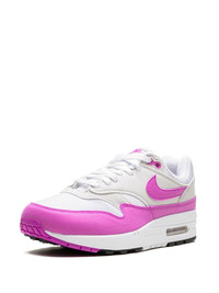 Air Max 1 "Fuchsia Dream" sneakers Nike’s Air Max 1 sneakers were introduced in 1987 as a running shoe. Retaining the distinctive exposed Air unit in the midsole, this “Fuchsia Dream” iteration is crafted from colourblock panels of leather, mesh and suede. The iconic Swoosh logo decorates the sidewall. Highlights - White/light grey/fuchsia pink - Mesh panelling/calf leather - Signature swoosh logo detail - Embroidered logo to the rear - Round toe - Front lace-up fastening - Logo patch at the tongue - Branded insole - Rubber sole with max air cushioning - These styles are supplied by a premium sneaker marketplace. stocking only the most sought-after footwear, they source and curate some of the most hard to find sneakers from around the world. Imported Composition Leather 100% SIZE & FIT Measurement HEEL 1.37 in(3.5 cm) Sole height 0.78 in(2 cm)