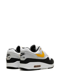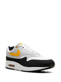 Air Max 1 panelled sneakers Nike's Air Max cushioning was first introduced in 1987 with the release of the Nike Air Max 1 sneakers. The iconic style has received countless updates since that initial release and can be seen here in a boldly branded reimagining. Crafted from faux leather, the white pair is enhanced with yellow accents and features Nike's logo prints throughout. Highlights - White/black/grey - Panelled design - Suede panels - Micro-mesh panels - Signature swoosh logo detail - Logo patch at the tongue - Embroidered logo to the rear - Almond toe - Front lace-up fastening - Branded insole - Speckled sole - Ridged rubber sole Imported Composition Leather 100% SIZE & FIT Measurement HEEL 1.37 in(3.5 cm)