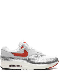 Air Max 1 Premium "Chile Pepper" sneakers Highlights - White/red/grey - Canvas/leather - Foiled finish - Branded heel counter - Signature swoosh logo detail - Logo patch at the tongue - Front lace-up fastening - Round toe - Foam midsole - Signature zoom air unit - Rubber sole - These styles are supplied by a premium and authenticated sneaker marketplace. stocking only the most sought-after footwear, they source and curate some of the most hard to find sneakers from around the world. Imported Composition Sole: Rubber 100% Outer: Fabric 100%, Leather 100% Lining: Fabric 100%