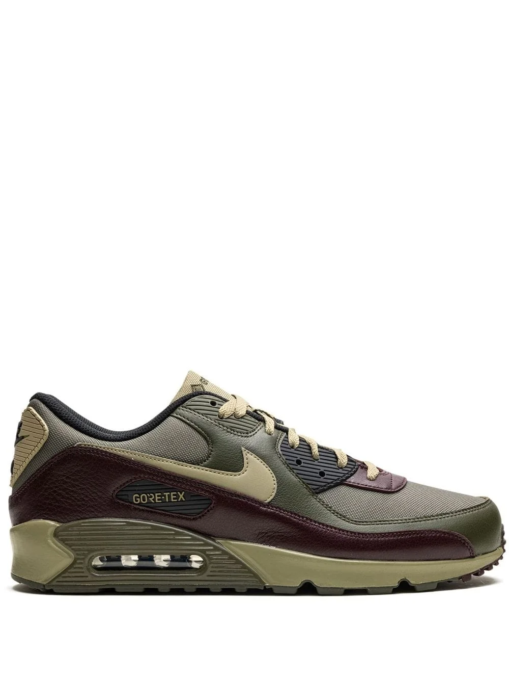 Air Max 90 Gore-Tex "Medium Olive" sneakers Ready for harsher conditions, these Air Max 90 are constructed with waterproof GORE-TEX material. The pair indulges in a colour block design enhanced by a Swoosh on the sides and sits atop a rubber sole with Max Air cushioning. Highlights - Olive green/light olive green/burgundy - Leather - Waterproof gore-tex® material - Signature swoosh logo detail - Round toe - Front lace-up fastening - Logo patch at the tongue - Branded insole - Rubber sole with max air cushioning - These styles are supplied by a premium and authenticated sneaker marketplace. stocking only the most sought-after footwear, they source and curate some of the most hard to find sneakers from around the world. Imported Composition Sole: Rubber 100% Outer: Fabric 100%, Leather 100% Lining: Fabric 100%