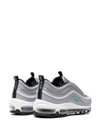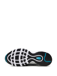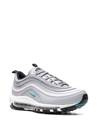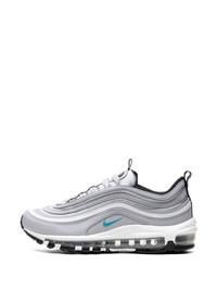 Air Max 97 "Silver Aqua" sneakers Nike's Air Max 97 sneakers are distinguished by the signature ripple-effect design — inspired by water droplets and Japanese bullet trains. This pair is seen in grey with pops of aqua blue. The signature Swoosh logo lands on the tongue, sides and sole, completing the design. Highlights - Grey/white/blue - Leather - Mesh design - Signature swoosh logo detail - Round toe - Front lace-up fastening - Logo patch at the tongue - Double pull-tab at the opening - Transparent max air sole - Rubber sole - These styles are supplied by a premium sneaker marketplace. stocking only the most sought-after footwear, they source and curate some of the most hard to find sneakers from around the world. Imported Composition Leather 100%