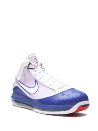 Air Max Lebron 7 "Dodgers" sneakers Time for some teamwork. The Los Angeles Dodgers-Inspired Nike LeBron 7s come with a predominantly white upper that’s paired with patent leather overlays in 'Dodger' blue, and red accents on the sock liner and outsole. Highlights - White/blue/red - Rubber - Signature swoosh logo detail - Contrasting panel detail - Round toe - Front lace-up fastening - Logo-print tongue - Branded insole - Rubber sole with max air cushioning - These styles are supplied by a premium sneaker marketplace. stocking only the most sought-after footwear, they source and curate some of the most hard to find sneakers from around the world. Imported Composition Sole: Rubber 100% Outer: Polyester 100% Lining: Polyester 100%
