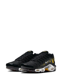Air Max Plus "Black University/Gold/White" sneakers Highlights - Black - Front lace-up fastening - Panelled design - Gradient effect - Signature swoosh logo detail - Logo patch at the tongue - Round toe - Signature air max sole - Release date: january 1st, 2025 - These styles are supplied by a premium and authenticated sneaker marketplace. stocking only the most sought-after footwear, they source and curate some of the most hard to find sneakers from around the world. Imported Composition Lining: Fabric 100% Sole: Rubber 100% Outer: Calf Leather 100%, Mesh 100%