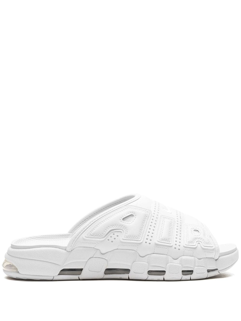 Air More Uptempo slides Highlights - White - Slip-on style - Padded design - Perforated detailing - Applique logo - Signature swoosh logo detail - Round open toe - Branded insole - Signature exposed air unit - Rubber outsole Imported Composition Sole: Rubber 100% Outer: Calf Leather 100% Lining: Foam 100%