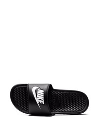 Benassi JDI slides Lighting up any casual collection with a clean design, Nike presents the Benassi JDI. This black slider is detailed with punchy white branding residing on its strap, while foam underfoot promises to cushion every stride. Imported Composition Outer: Leather 100% Sole: Rubber 100% Lining: Fabric 100%