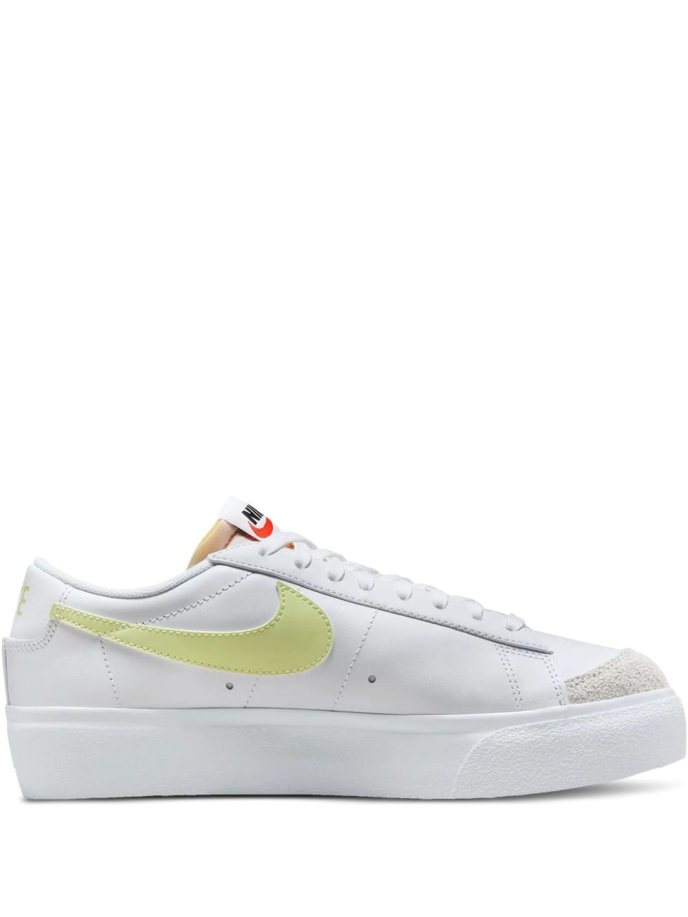 Blazer Low Platform "White Life Lime" sneakers Highlights - White - Padded ankle - Signature swoosh logo detail - Perforated detailing - Logo patch at the tongue - Front lace-up fastening - Round toe - Flat sole - Branded insole - Release date: january 01st, 2025 - These styles are supplied by a premium and authenticated sneaker marketplace. stocking only the most sought-after footwear, they source and curate some of the most hard to find sneakers from around the world. Imported Composition Lining: Fabric 100% Outer: Leather 100%, Suede 100% Sole: Rubber 100%