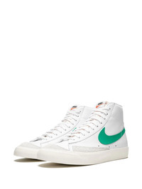 Blazer Mid '77 Vintage "Lucid Green" sneakers Thanks in part to Virgil Abloh's recent collaborations, the Nike Blazer has been given some more attention as of late. This Nike Blazer Mid '77 VNTG 'Lucid Green' first released in January 2019. The clean take on the '70s basketball model features a white leather upper, grey suede overlays, and a nylon tongue. Hits of Lucid Green cover the Swoosh on each side panel and "Nike" branding on each heel. Vintage touches include exposed padding at the top of each tongue, a sail-coloured midsole, and a retro Nike logo on the tongue tab.Please note this item is unisex and sold in men's sizing. Imported Composition Calf Leather 100%