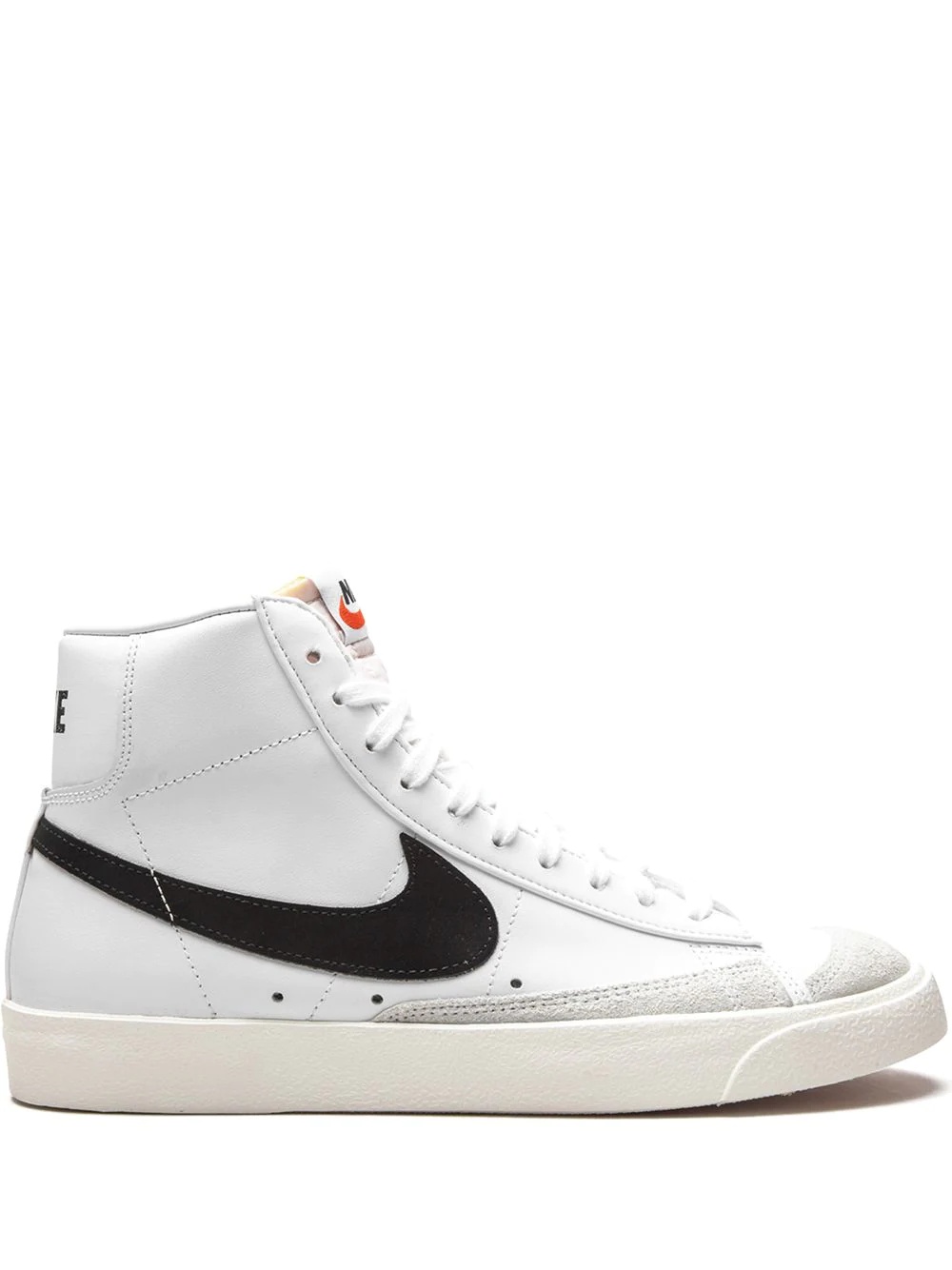 Blazer Mid '77 Vintage sneakers The Nike Blazer Mid 77 has a style that matches its retro design. In a black and white construction, the Blazer's features al a vintage-looking suede touch. A retro Nike logo appears on the tongue and old school “NIKE” typography appears on the heel. The white Swoosh adds to the classic style. With nostalgic appeal, the Nike Blazer Mid Vintage proudly nods to its 1970s roots. Highlights - White - Leather/rubber - Signature swoosh logo detail - Contrasting panel detail - Round toe - Front lace-up fastening - Logo patch to the front - Ankle-length - Branded insole - Rubber sole - These styles are supplied by a premium sneaker marketplace. stocking only the most sought-after footwear, they source and curate some of the most hard to find sneakers from around the world. Imported Composition Leather 100% SIZE & FIT Measurement HEEL 1.18 in(3 cm) HEIGHT 4.33 in(11 cm) Sole height 0.98 in(2.5 cm)