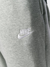 Club fleece track pants Grey cotton-blend Club tapered track pants from Nike featuring an embroidered logo to the front, a mid rise, an elasticated waistband, side seam pockets, a back pocket, ribbed cuffs, a regular length and a signature Nike swoosh. Imported Composition Cotton 80%, Polyester 20% Washing instructions Machine Wash