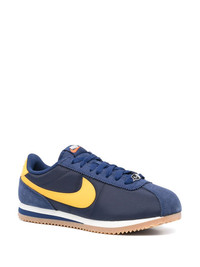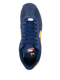 Cortez sneakers Highlights - Navy blue - Front lace-up fastening - Padded ankle - Flat rubber sole - Signature swoosh logo detail Imported Composition Outer: Fabric 100%, Calf Leather 100%, Calf Suede 100% Lining: Fabric 100% Sole: Rubber 100%