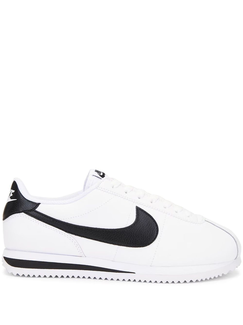 Cortez "White/Black" sneakers Highlights - White - Calf leather - Front lace-up fastening - Two-tone design - Embroidered logo to the rear - Signature swoosh logo detail - Logo patch at the tongue - Round toe - Branded insole - Ridged rubber sole - These styles are supplied by a premium and authenticated sneaker marketplace. stocking only the most sought-after footwear, they source and curate some of the most hard to find sneakers from around the world. Imported Composition Lining: Fabric 100% Outer: Calf Leather 100% Sole: Rubber 100%