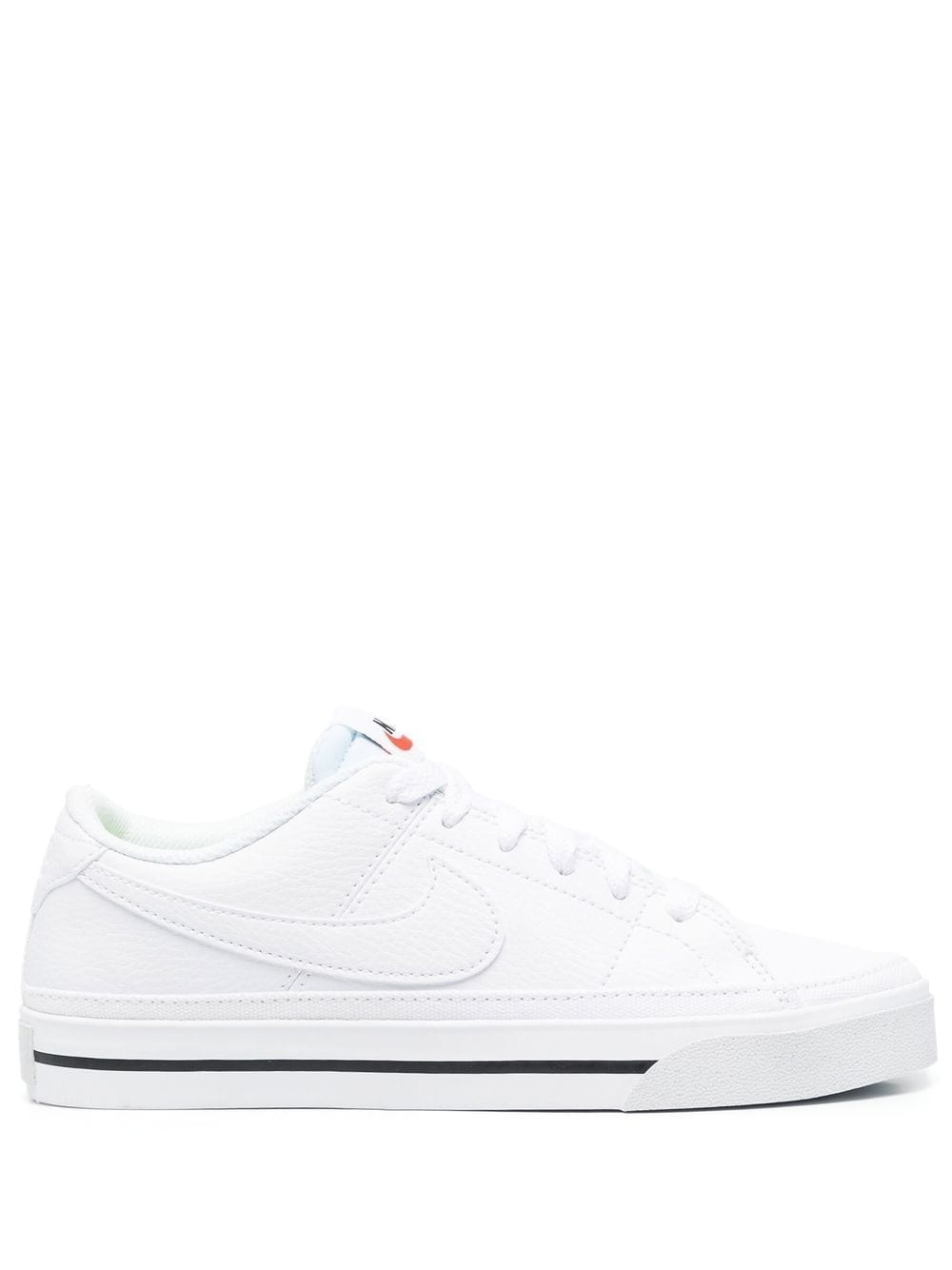 Court Legacy Sport sneakers white/black calf leather signature Swoosh logo detail logo patch at the tongue branded heel counter stripe trim front lace-up fastening round toe branded footbed flat rubber sole Imported Composition Leather 100% SIZE & FIT Measurement HEEL 0.98 in(2.5 cm) Sole height 0.78 in(2 cm)