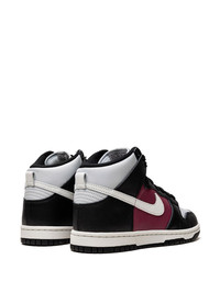 Dunk High "Black/Summit White/Rosewood" sneakers A basketball silhouette, the Nike Dunk Retro is presented in a supportive high-top design here. Contrasting black, grey and burgundy tones create an effortlessly eye-catching look for the pair. Highlights - Black/grey/burgundy - Leather - Signature swoosh logo detail - Contrasting panel detail - Round toe - Front lace-up fastening - Logo patch at the tongue - Branded insole - Rubber sole - These styles are supplied by a premium sneaker marketplace. stocking only the most sought-after footwear, they source and curate some of the most hard to find sneakers from around the world. Imported Composition Leather 100% SIZE & FIT FittingInformation This piece fits small – take one size up Measurement HEEL 1.18 in(3 cm) Sole height 0.78 in(2 cm) HEIGHT 3.93 in(10 cm)