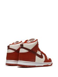 Dunk High LXX "Cinnabar" sneakers The iconic Nike Dunk High now arrives in a 'Cinnabar', 'Mars Stone' and 'Sail' colour scheme. This model features a high-top silhouette, made of leather, and is highlighted with a contrasting Swoosh logo on the sides. Underneath, a two-toned rubber sole completes the design. Highlights - Cream white/dark red - Calf leather - Signature swoosh logo detail - Round toe - Front lace-up fastening - Logo patch at the tongue - Ankle-length - Branded insole - Rubber sole - These styles are supplied by a premium sneaker marketplace. stocking only the most sought-after footwear, they source and curate some of the most hard to find sneakers from around the world. Imported Composition Leather 100%