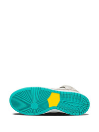 Dunk High Premium sneakers The Dunk High Premium SB 'Flamingo' features a cracked-earth effect throughout its grey upper, which is accented by a yellow and pink tongue tag. Hyper Jade brings the most prominent colour to the design, with the colour on the inner lining and outsole. A white Zoom Air midsole provides cushioning, while the insole sports a cartoon flamingo graphic, giving the shoe its name. Imported Composition Sole: Rubber 100% Outer: Leather 100% Lining: Polyester 100%
