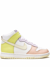 Dunk High "Lemon Twist" sneakers The Dunk High is back, with a lot of colours. It is crafted from white leather and complemented with a cream colour on the Swoosh, while pink, light lemon and purple accents decorate the sneaker. The perforated details on the toe box provide breathability, while Zoom Air in the sockliner is included for cushioning. Underfoot, the usual rubber outsole offers traction. Highlights - White/pink/light lemon - Leather - Signature swoosh logo detail - Contrasting panel detail - Round toe - Front lace-up fastening - Logo patch at the tongue - Ankle-length - Branded insole - Rubber sole - These styles are supplied by a premium sneaker marketplace. stocking only the most sought-after footwear, they source and curate some of the most hard to find sneakers from around the world. Imported Composition Leather 100% SIZE & FIT FittingInformation This piece fits small – take one size up Measurement HEEL 1.18 in(3 cm) Sole height 0.78 in(2 cm) HEIGHT 3.93 in(10 cm)