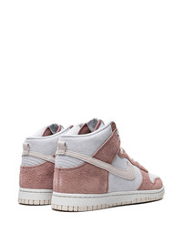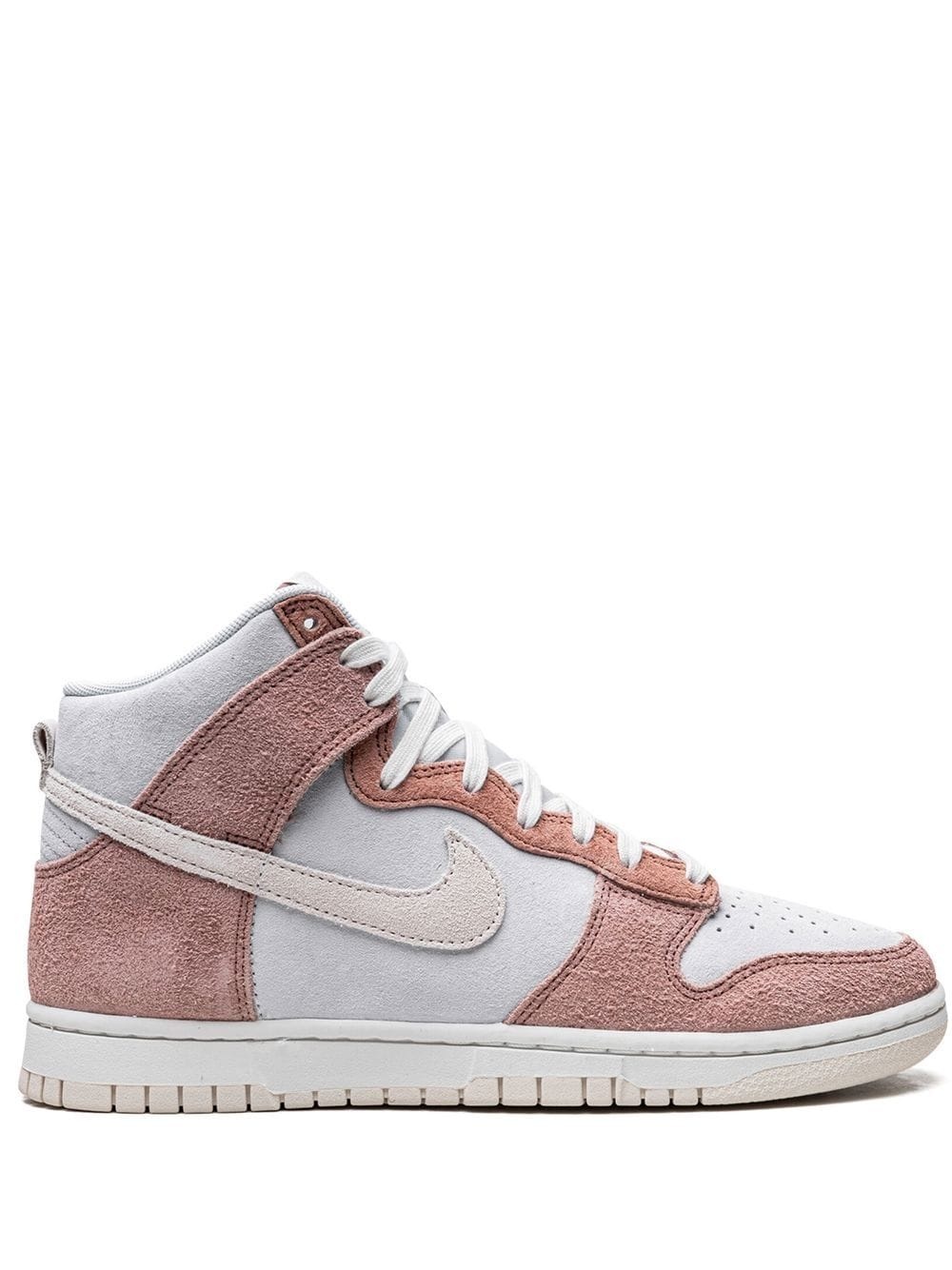 Dunk High sneakers A classic silhouette, Nike's Dunk High is presented here in an 'Aura' and 'Fossil Rose-Aura-Summit White' colourway. This allows the signature Swoosh logo - a motif designed to represent movement and speed - to stand out at the side. Imported Composition Suede 100%