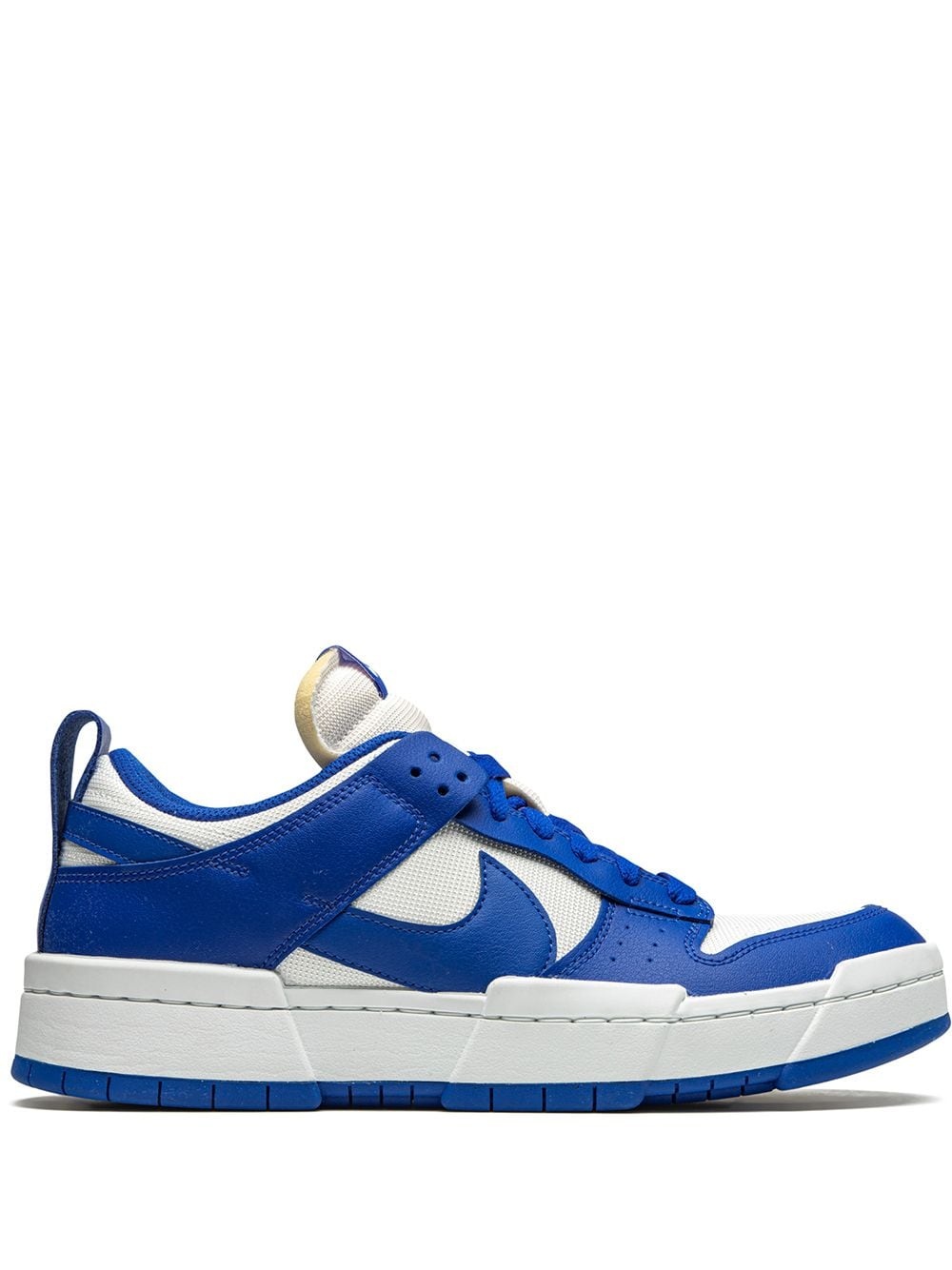 Dunk Low Disrupt "Game Royal" sneakers Designed as a re-imagining of the of the Dunk silhouette, these Nike Dunk Low Disrupt "Game Royal" sneakers were eagerly anticipated before release. The game royal overlays nod to the colourway of the original Dunk palette, and contrast with the abstract textured midsoles here. Imported Composition Leather 100% SIZE & FIT FittingInformation This piece fits small – take one size up Measurement HEEL 1.37 in(3.5 cm) Sole height 0.98 in(2.5 cm)