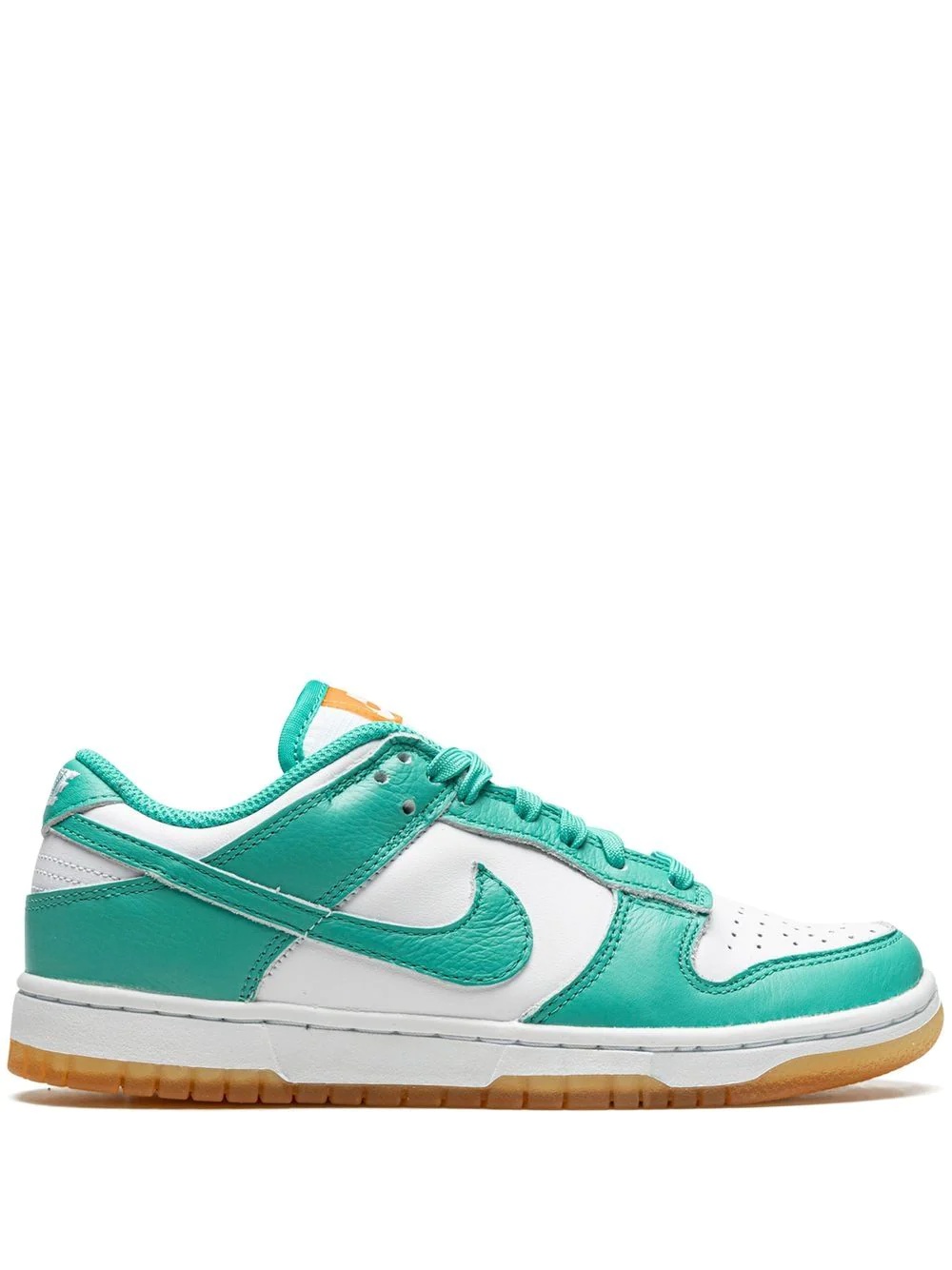 Dunk Low "Teal Zeal" sneakers Already seen in many other colourways, the Nike Dunk Low comes now in a new two-tone colour option - in white and green. The pair features white leather across the panels, toe, and ankle, along with the signature perforations on the toe. Then, the green shade adorns the overlays and Swoosh logo while orange hits the tongue branding. Underneath, a rubber sole adds comfort to the design. Highlights - White/green - Leather - Signature swoosh logo detail - Embroidered logo to the rear - Perforated detailing - Round toe - Front lace-up fastening - Logo patch at the tongue - Branded insole - Rubber sole - These styles are supplied by a premium sneaker marketplace. stocking only the most sought-after footwear, they source and curate some of the most hard to find sneakers from around the world. Imported Composition Leather 100%