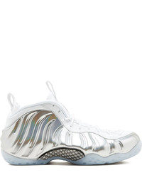 Foamposite One "Silver" sneakers There’s been a “Chromeposite” already, but the Nike Air Foamposite One is shining again with this eye-catching colorway just for the ladies. The women’s Foamposite One features an iridescent silver Foamposite shell with bright white accents and an icy outsole for an overall clean and pristine appearance. If the angels wear Foams in heaven, they must look like something like this. The Chrome Foams are actually only the second women’s specific Foamposite release ever, so if these are any indication of what else might be on the horizon, lady Foamposite fans have much to get excited about. Imported Composition Outer: Polyester 100% Lining: Polyester 100% Sole: Rubber 100%