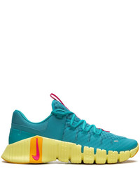 Free Metcon 5 "Dusty Cactus/Fierce Pink" sneakers Highlights - Blue - Mesh panelling - Signature swoosh logo detail - Round toe - Front lace-up fastening - Pull-tab at the tongue - Branded insole - Rubber sole - These styles are supplied by a premium and authenticated sneaker marketplace. stocking only the most sought-after footwear, they source and curate some of the most hard to find sneakers from around the world. Imported Composition Sole: Rubber 100% Outer: Fabric 100% Lining: Fabric 100%