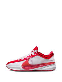 Giannis Freak 5 ASW "University Red/Bright Crimson/White" sneakers Highlights - Bright red - Front lace-up fastening - Panelled design - Colour-block design - Debossed number to the rear - Embossed detail at the tongue - Quilted panels - Text print to the side - Logo patch to the side - Round toe - Padded ankle - Branded insole - Cushioned midsole - Rubber outsole - These styles are supplied by a premium and authenticated sneaker marketplace. stocking only the most sought-after footwear, they source and curate some of the most hard to find sneakers from around the world. Imported Composition Sole: Rubber 100% Lining: Fabric 100% Outer: Mesh 100%