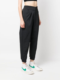 high-waisted tapered trousers Highlights - Black - Pleat detailing - Signature swoosh logo detail - Embroidered logo - High waist - Concealed front fastening - Rear elasticated waistband - Two diagonal pockets to the sides - Rear welt pocket - Tapered leg - Ankle zips Imported Composition Polyester 100% SIZE & FIT Model measurements Height 5 ft 10 in(1.78 m) Bust/Chest 31.49 in(80 cm) Hips 36.22 in(92 cm) Waist 25.59 in(65 cm)