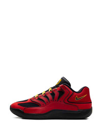 KD 18 "Air Bakin'" sneakers Highlights - Red - Black midsole - Yellow accents - Mesh panelling - Lace-up fastening - Sculpted design - These styles are supplied by a premium and authenticated sneaker marketplace. stocking only the most sought-after footwear, they source and curate some of the most hard to find sneakers from around the world. Imported Composition Outer: Calf Leather 100%, Mesh 100%, Calf Suede 100% Sole: Rubber 100% Lining: Fabric 100%