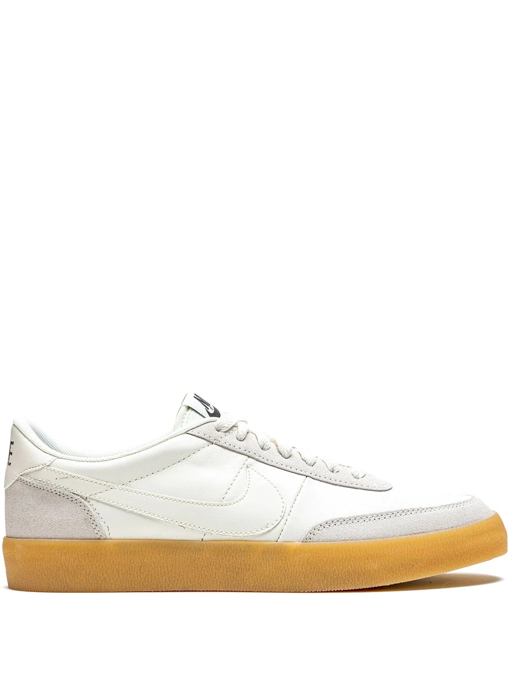 Killshot 2 Leather "Sail/Gum" sneakers Everyone knows you can't mess with a basic. Get a precise shot in these white and grey leather Killshot 2 sneakers from Nike. You will get all the wins. Highlights - White - Suede/leather/rubber - Signature swoosh logo detail - Contrasting panel detail - Round toe - Front lace-up fastening - Logo patch at the tongue - Branded insole - Flat rubber sole - These styles are supplied by a premium sneaker marketplace. stocking only the most sought-after footwear, they source and curate some of the most hard to find sneakers from around the world. Imported Composition Leather 100% SIZE & FIT Measurement HEEL 0.94 in(2.4 cm) Sole height 0.78 in(2 cm)
