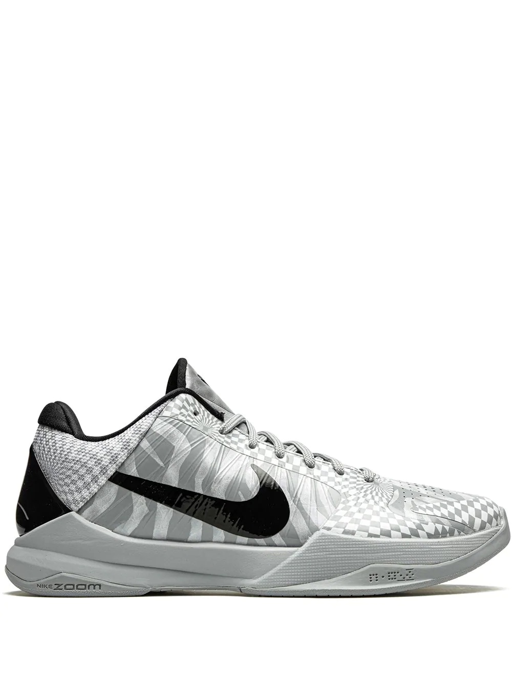 Kobe 5 Protro "DeMar DeRozan" sneakers Get your game face on. Designed as a player exclusive colourway, these Kobe 5 Protro “DeMar DeRozan PE” sneakers were designed for San Antonio Spurs’ shooting guard. Released by Nike Basketball in Fall 2020, the low-top pair come finished with a zebra-like pattern across the upper panels, while Kobe Bryant's signature graces the heel cup. The perfect pair to challenge everything you know about sneakers. Highlights - Wolf grey/white/black - Round toe - Flat rubber sole - Front lace-up fastening - Branded insole - Signature swoosh logo detail - These styles are supplied by a premium sneaker marketplace. stocking only the most sought-after footwear, they source and curate some of the most hard to find sneakers from around the world. Imported Composition Lining: Nylon 100% Outer: Polyester 100% Sole: Rubber 100%