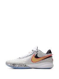 Lebron 20 "The Debut" sneakers This new colourway of LeBron’s 20th signature sneaker comes in white, black and gold tones. This pair features a knitted upper decorated with double-stacked Swooshes on the lateral side and is finished with a midsole with a graphic print and a multidirectional rubber outsole for support. Imported Composition Outer: Polyester 100% Sole: Rubber 100% Lining: Fabric 100%