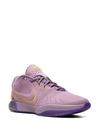 LeBron XXI "Purple Rain" sneakers Extending a longstanding collaboration, Nike's LeBron 21 sneakers are LeBron James' twenty-first signature shoe with Nike Basketball, launching in a Prince-inspired "Purple Rain" colourway. Crafted from mauve suede to a sleek silhouette, they are enhanced with yellow accents on the Swoosh logo, middle eye stays, and heel, referencing the team colours of James' NBA team, the Los Angeles Lakers. Underfoot, a Zoom Air unit pairs with foam to support landing, lend a propulsive feeling, and ensure a pillowy feel. They are finished with James’s signature branding at the tongue. Highlights - Mauve/mustard yellow - Calf suede - Signature swoosh logo detail - Logo-embroidered tongue - Perforated detailing - Round toe - Front lace-up fastening - Branded insole - Signature zoom air unit - Rubber outsole - These styles are supplied by a premium sneaker marketplace. stocking only the most sought-after footwear, they source and curate some of the most hard to find sneakers from around the world. Imported Composition Leather 100%