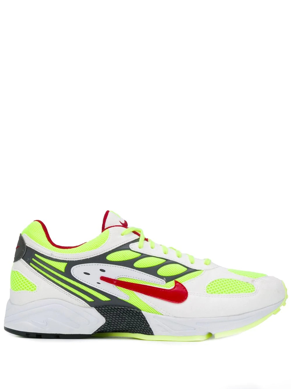 Air Ghost Racer Retro "Neon Yellow" sneakers Neon yellow and white leather mesh upper sneakers from Nike featuring a round toe, a lace-up front fastening, a padded ankle, a flat rubber sole, a signature Nike swoosh and stitching details. Please note this item is unisex and sold in men's sizing. Imported Composition Other fibres 100% SIZE & FIT Measurement HEEL 1.37 in(3.5 cm) Sole height 0.39 in(1 cm) FittingInformation This piece fits small – take one size up