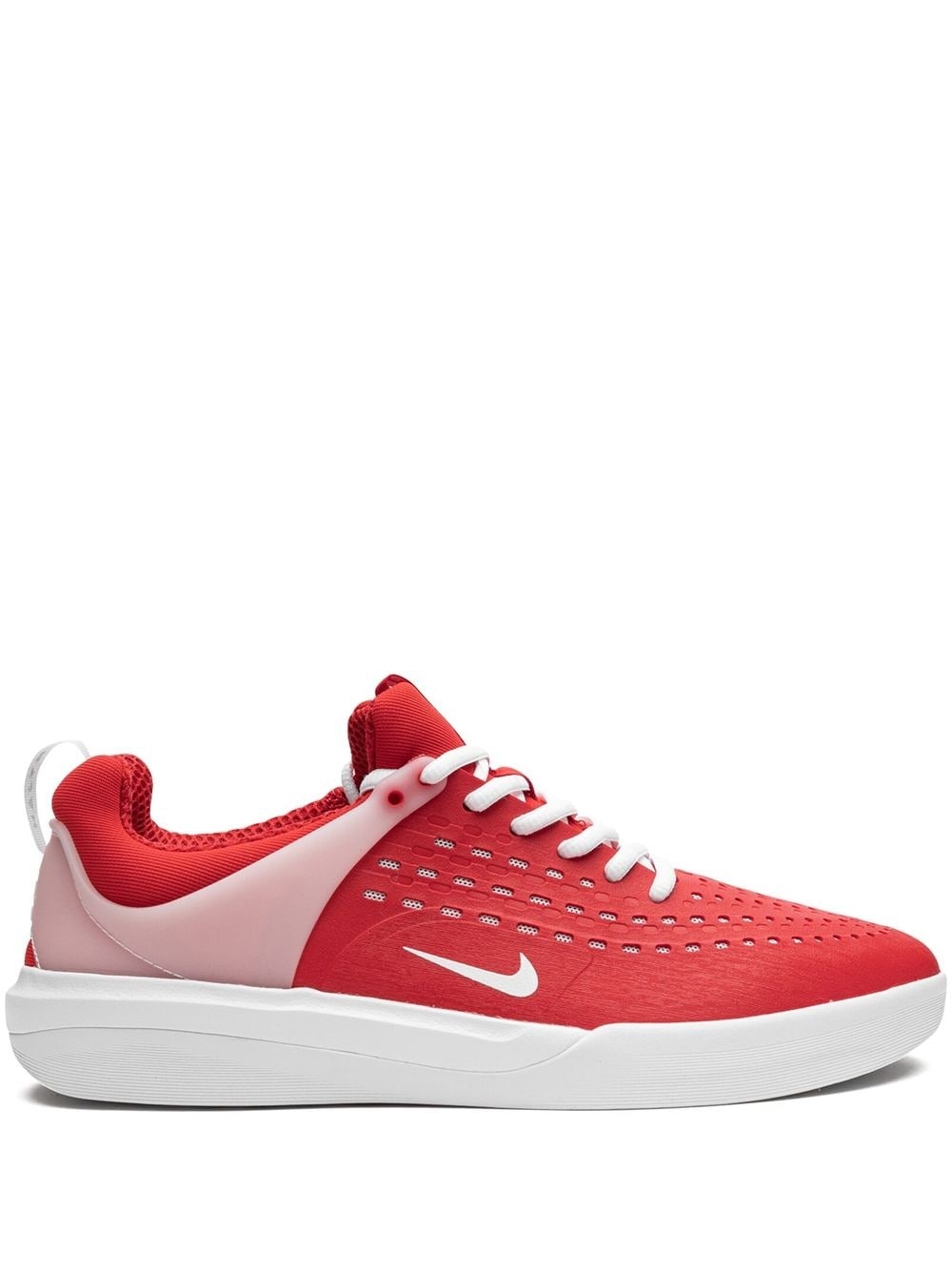 Nyjah 3 SB sneakers A silhouette that nods to the Air Zoom Spiridon, the Nike SB Nyjah Free 2 is presented here in a white and red colourway. This model features a clean design, constructed with a durable upper construction featuring mesh panels for breathability, and sits atop a flat rubber sole for traction. Imported Composition Outer: Plastic 100%, Fabric 100% Sole: Rubber 100% Lining: Fabric 100%