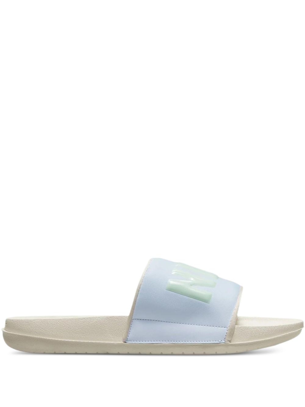 Offcourt "Phantom/Barely Green" slides Highlights - White - Slip-on style - Logo-print strap - Round open toe - Moulded footbed - Rubber sole Imported Composition Outer: Leather 100% Sole: Rubber 100% Lining: Polyurethane 100%