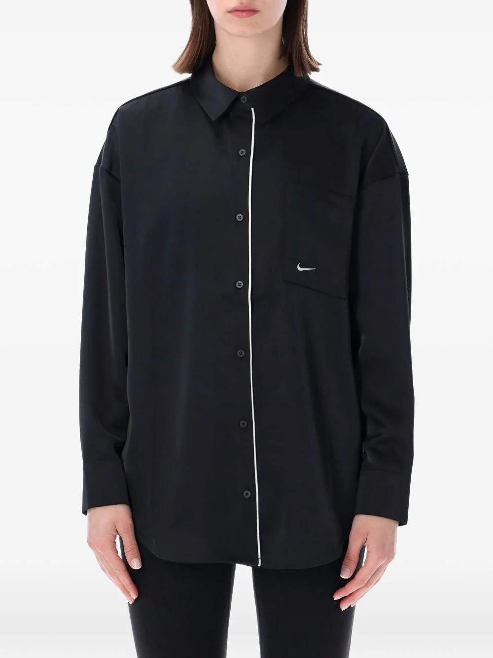 oversized shirt Highlights - Black - Piped trim - Chest pocket - Logo detail - Button fastening Imported Composition Polyester 100% Washing instructions Machine Wash