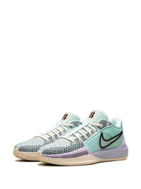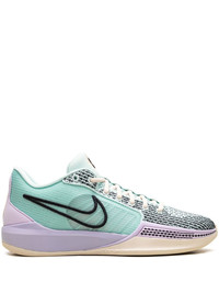 Sabrina 1 "Brooklyn's Finest" sneakers Sabrina Ionescu's first signature shoe with Nike Basketball, the Nike Sabrina 1 'Brooklyn's Finest' sneakers, are designed to capture the essence of the New York City borough. The sneakers feature a stylish black and Jade Ice engineered mesh construction with Lilac Bloom accents throughout, while Zoom Air cushioning in the forefoot of the Nike React midsole ensures advanced comfort both on and off the basketball court. Highlights - Aqua blue/lilac purple - Faux leather - Mesh panelling - Signature swoosh logo detail - Contrasting panel detail - Round toe - Front lace-up fastening - Logo patch at the tongue - Branded insole - Rubber sole - These styles are supplied by a premium and authenticated sneaker marketplace. stocking only the most sought-after footwear, they source and curate some of the most hard to find sneakers from around the world. Imported Composition Sole: Rubber 100% Outer: Mesh 100%, Polyurethane 100% Lining: Fabric 100%