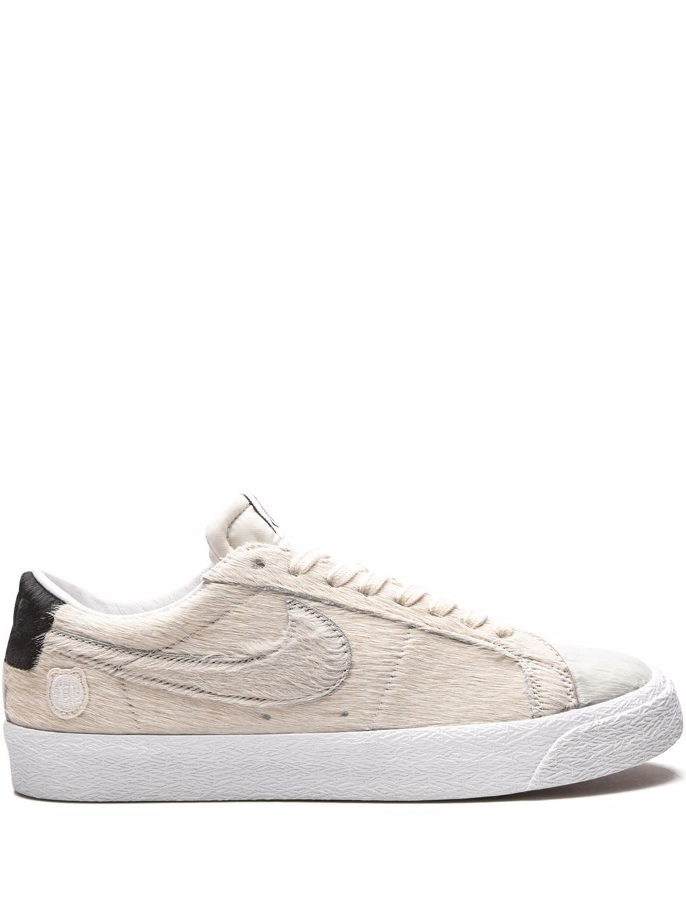 SB Blazer Low "Medicom Toy 2020" sneakers The Medicom Toy x Nike SB Blazer Low “Bearbrick” is a limited-edition collaboration between the Japan-based toy manufacturer and Nike on the low-top skate shoe. Released by Nike in December 2020, this sneaker celebrates the popular collectable figurine of the same nickname. Design details include a 'Light Cream' faux pony hair upper with tonal Swoosh branding on the mid-panel. The hairy material can also be found on the tongue, eyelets, and toe. Medicom’s "Be@rbrick" logo is embroidered on the heel and stitched onto the white nylon tongue tag to complete the look. Highlights - Cream - Leather - Signature swoosh logo detail - Faux-fur trim - Contrasting heel counter - Round toe - Front lace-up fastening - Logo patch at the tongue - Branded insole - Flat rubber sole - These styles are supplied by a premium sneaker marketplace. stocking only the most sought-after footwear, they source and curate some of the most hard to find sneakers from around the world. Imported Composition Leather 100%