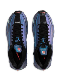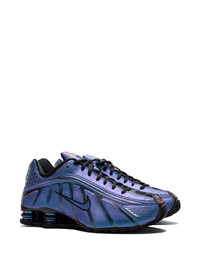 Shox R4 "Iridescent/Black" sneakers Highlights - Blue - Front lace-up fastening - Iridescent effect - Perforated detailing - Signature swoosh logo detail - Logo patch at the tongue - Round toe - Branded insole - Signature nike shox columns - Studded sole - These styles are supplied by a premium and authenticated sneaker marketplace. stocking only the most sought-after footwear, they source and curate some of the most hard to find sneakers from around the world. Imported Composition Outer: Fabric 100%, Polyurethane 100% Lining: Fabric 100% Sole: Rubber 100%
