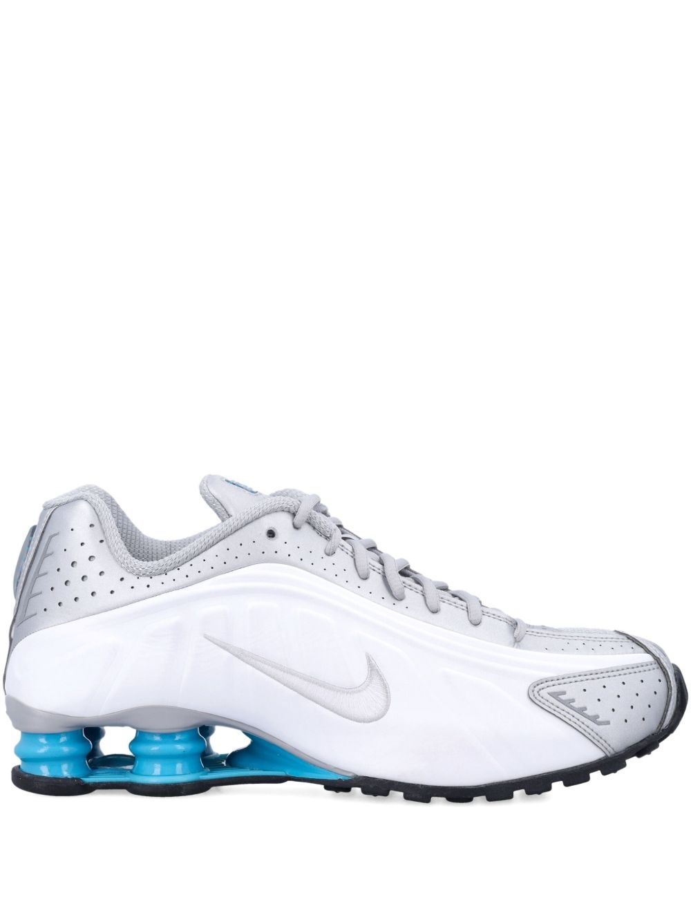 Shox R4 sneakers Highlights - White - Perforated detailing - Signature shox cushioning - Lace-up fastening - Signature swoosh logo detail - Rubber outsole Imported Composition Outer: Rubber 100%, Fabric 100% Sole: Rubber 100% Lining: Fabric 100%