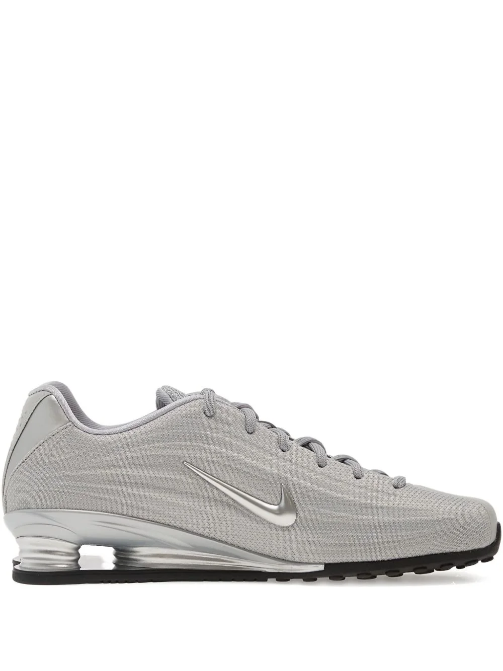 Shox Z metallic-logo sneakers Highlights - Silver - Metallic logo - Lace-up fastening - Ridged sole - Pull-tab at the rear - Round toe Imported Composition Outer: Fabric 100%, Calf Leather 100% Lining: Fabric 100% Sole: Rubber 100%