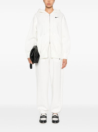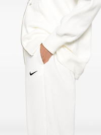 Swoosh-embroidered track pants Highlights - White - Cotton blend - Jersey texture - Elasticated waistband - Signature swoosh logo detail - Two side slit pockets - Tapered leg - Elasticated ankles - Fleece lining - Drawstring fastening Imported Composition Cotton 80%, Polyester 20% SIZE & FIT Model measurements Height 5 ft 9 in(1.76 m) Bust/Chest 31.88 in(81 cm) Hips 35.43 in(90 cm) Waist 24.8 in(63 cm) FittingInformation Designed for a relaxed tapered cut, these trousers allow for a close fit at the waist and offer a loose fit at the thighs, with a closer fit toward the ankles The elasticated waist and hem offer a secure, comfortable fit Made from a midweight non-stretch fabric, this piece offers minimal elasticity when worn This piece fits true to size – take your usual size Washing instructions Machine Wash