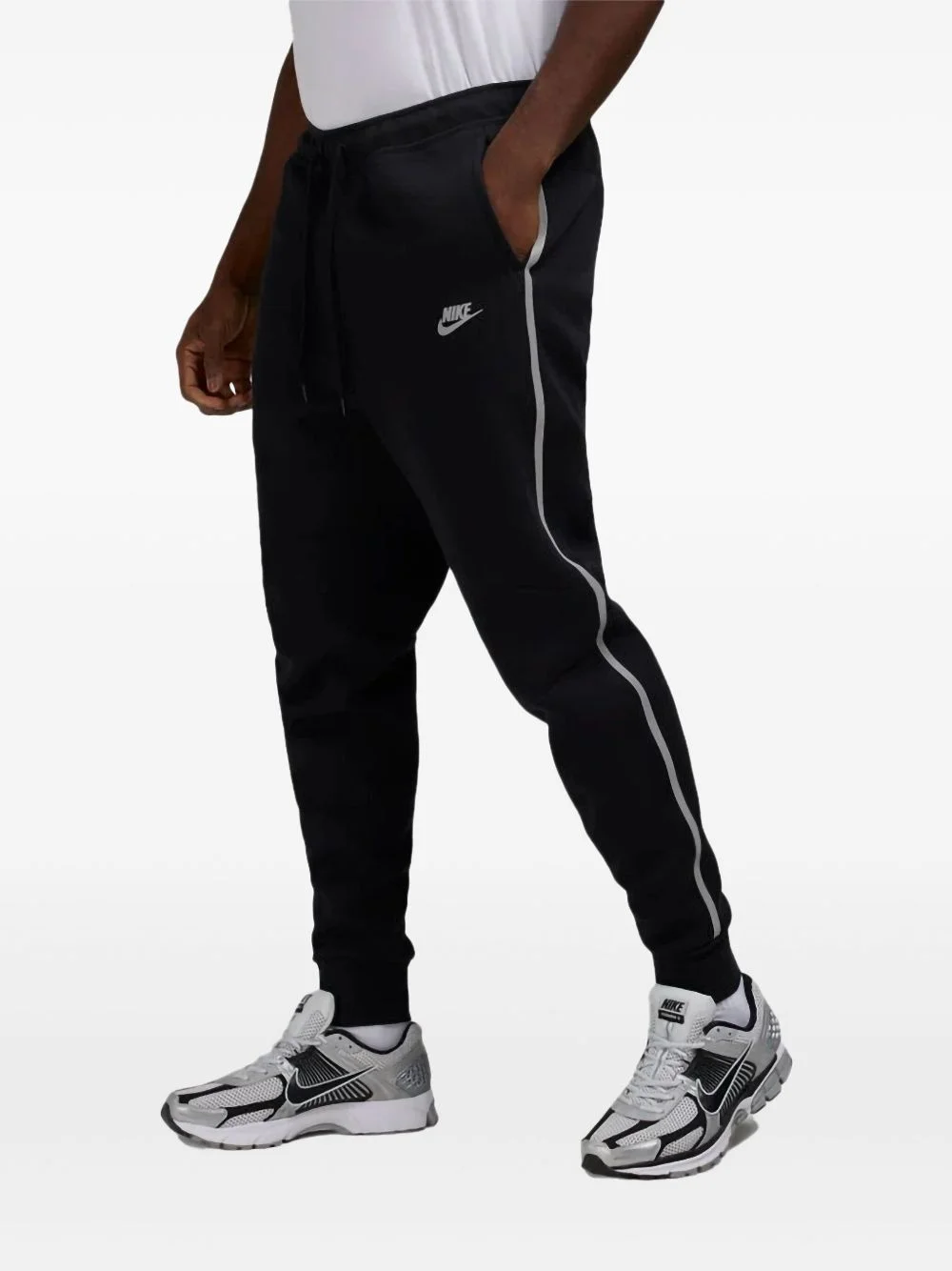 Tech Fleece track pants Highlights - Black - Elasticated drawstring waistband - Two side slit pockets - Reflective detailing - Signature swoosh logo detail - Ribbed ankles Imported Composition Lining: Cotton 100% Outer: Cotton 43%, Polyester 37%, Recycled Polyester 10%, Organic Cotton 10% Washing instructions Machine Wash