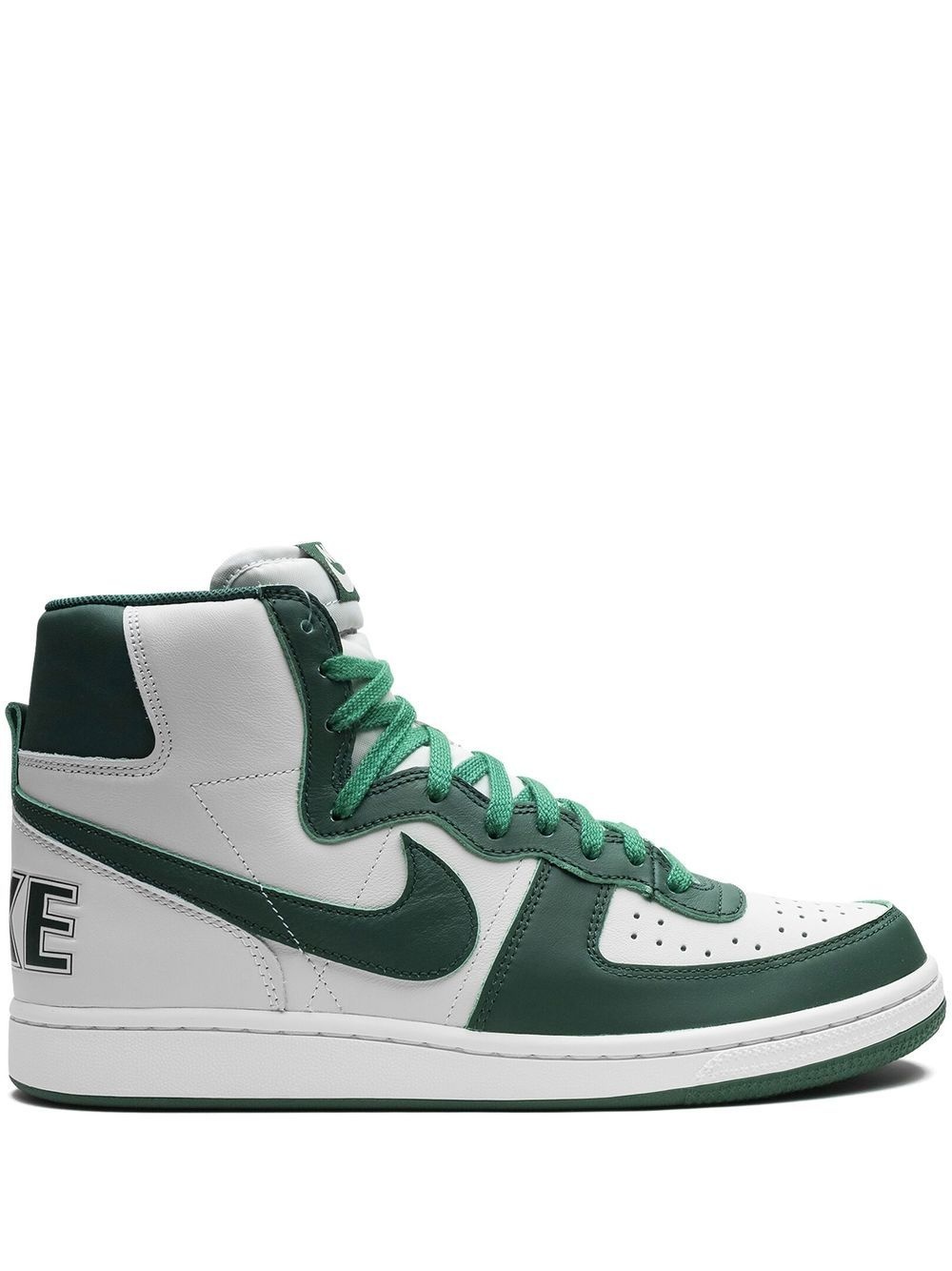 Terminator High "Noble Green" sneakers Nike's Terminator High 'Noble Green' sneakers feature a collegiate-inspired look. This model is crafted from calf leather, in green and white hues, and is highlighted with retro branding details - like the logo at the heel. Underneath, a two-tone rubber sole completes the look. Highlights - White - Green - Calf leather - Signature swoosh logo detail - Logo print to the rear - Round toe - Front lace-up fastening - Logo patch at the tongue - Ankle-length - Branded insole - Rubber sole - These styles are supplied by a premium sneaker marketplace. stocking only the most sought-after footwear, they source and curate some of the most hard to find sneakers from around the world. Imported Composition Leather 100%