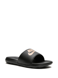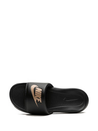 Victori One "Black" slides Nike's Victori One slides now arrive in a black and bronze colourway. This pair features a lightweight construction and a moulded footbed with a grip pattern that allows for a non-slip fit and support. Highlights - Black/bronze-tone - Slip-on style - Signature swoosh logo detail - Open toe - Moulded footbed - Flat rubber sole Imported Composition Lining: Polyurethane 100%, Rubber 100% Sole: Rubber 100%