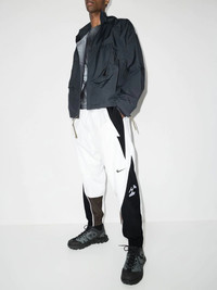 x Acronym colour-block track pants white/black/brown colour-block design signature Swoosh logo detail logo print at the leg elasticated drawstring waistband two side slit pockets rear zip-fastening pocket tapered leg ankle zips elasticated ankles Imported Composition Outer: Polyester 100% Lining: Polyester 100% SIZE & FIT Model measurements Height 6 ft 2 in(1.89 m) Bust/Chest 36.22 in(92 cm) Hips 35.82 in(91 cm) Waist 28.74 in(73 cm) FittingInformation This piece fits true to size. We recommend you get your regular size Cut for a loose fit Made with a mid-weight non-stretch fabric Washing instructions Machine Wash