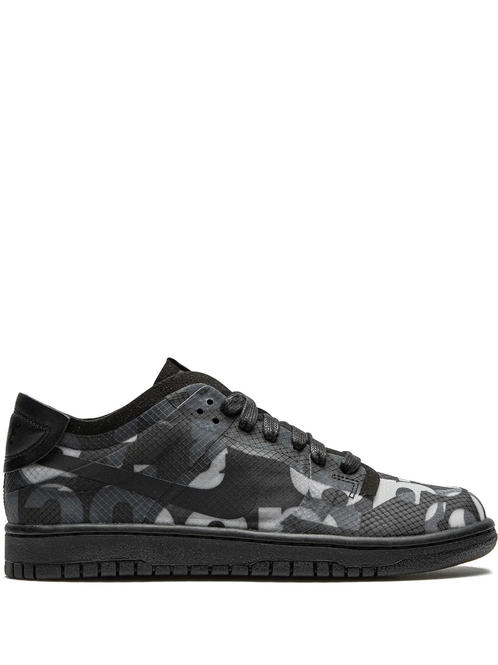 x Comme Des Garcons Dunk Low "Monogram Print" sneakers Comme Des Garcon's latest collaboration is sure to earn a spot in your growing sneaker collection. Designed with Nike, the iconic silhouette of the Nike Dunk low is updated with panels of black technical fabric and transparent panels for a layered effect. Sneakerheads unite. Highlights - Black - Leather/rubber - Round toe - Flat rubber sole - Front lace-up fastening - Branded insole - Monogram print - These styles are supplied by a premium sneaker marketplace. stocking only the most sought-after footwear, they source and curate some of the most hard to find sneakers from around the world. Imported Composition Leather 100% SIZE & FIT FittingInformation This piece fits small – take one size up