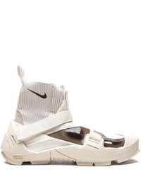 x Matthew M. Williams Free TR Flyknit 3 sneakers Nike and Matthew M. Williams utilise Vibram technology within the Free TR FK 3 / MMW sneakers for support on a variety of surfaces. Adding a contemporary finish, the pair boasts a high-top silhouette in contrasting sail and black hues. Highlights - Sail/black - Signature swoosh logo detail - Pull-tab at the heel - Panelled design - Round toe - Front touch-strap fastening - Ankle-length - Chunky rubber sole - These styles are supplied by a premium sneaker marketplace. stocking only the most sought-after footwear, they source and curate some of the most hard to find sneakers from around the world. Imported Composition Outer: Leather 100%, Fabric 100% Sole: Rubber 100% Lining: Fabric 100%