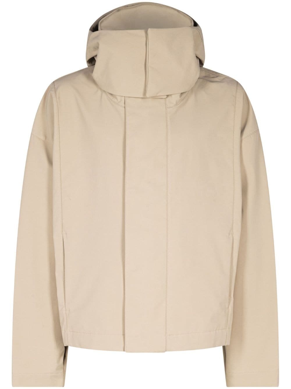 x MMW logo-embroidered jacket Highlights - Beige - Concealed front press-stud and two-way zip fastening - Detachable hood - High neck - Drop shoulder - Long sleeves - Press-stud fastening cuffs - Two side slit pockets - Embroidered logo to the rear - Signature swoosh logo detail - Straight hem Imported Composition Fabric 100%